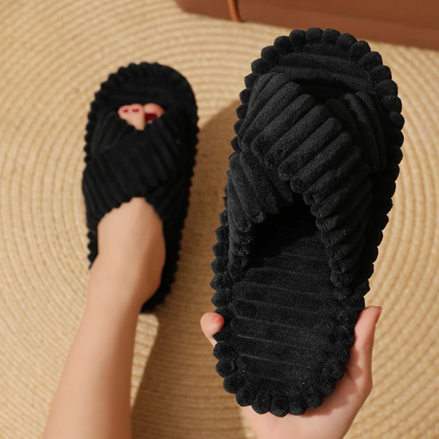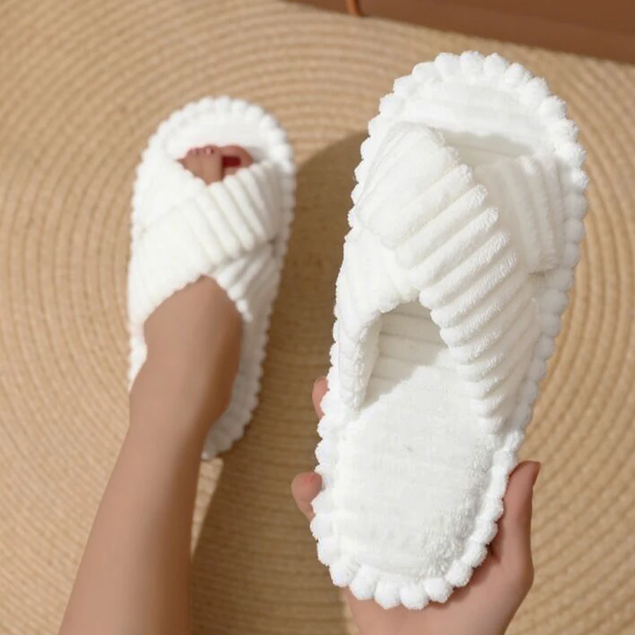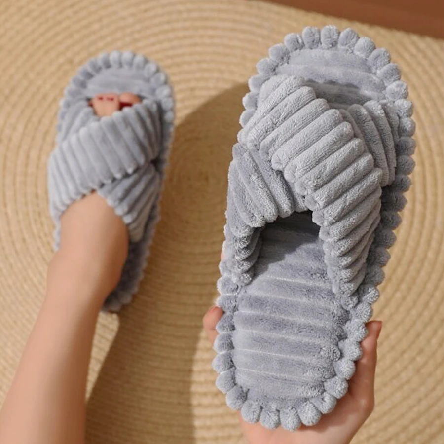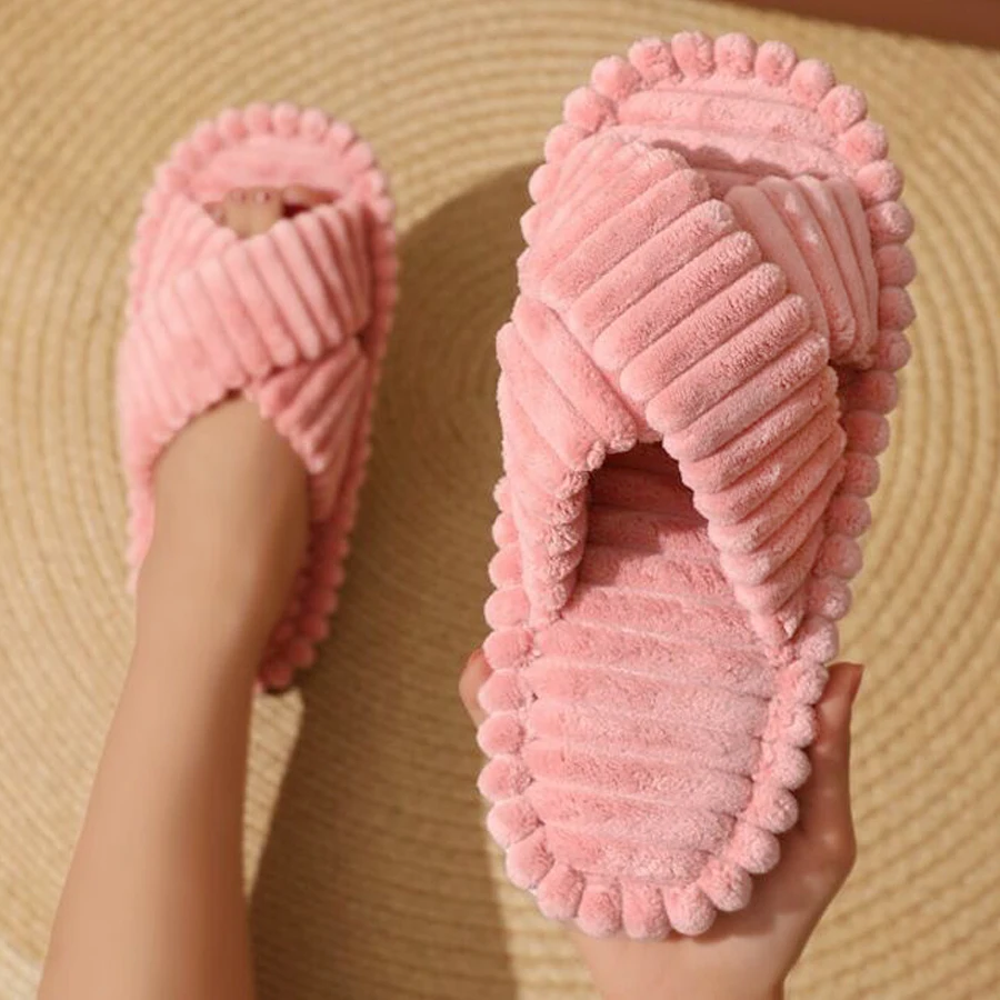 Popular Cross Furry Slippers Female Fluffy Slides Autumn Winter Outdoor Fashion Sexy EVA Light Flip Flops Sweat Soft Flat ShoesCNY 26.08-32.56/pair